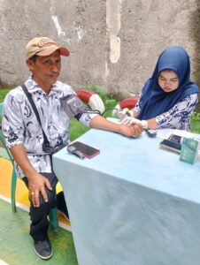 Ratusan warga berbondong-bondong memadati lapangan bulutangkis RT.001 RW.003 dari warga RW. 002 dan RW.003 Kel Mustikajaya Kecamatan Mustikajaya Kota Bekasi Jawa Barat dengan sabar memeriksa kesehatan dimulai dari pendaftaran, kemudian dengan tensi darah dan pengecekan gula darah sewaktu.
