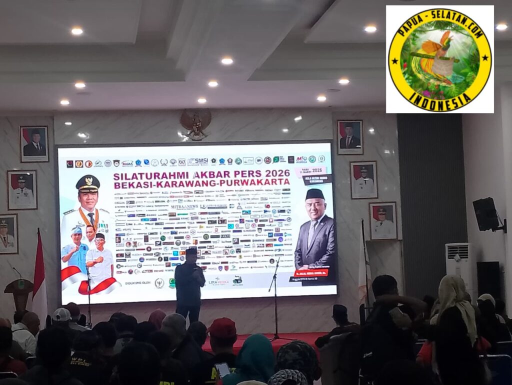 Redaksi Media Papua Selatan Wilayah Jawa Barat turut hadir dalam kegiatan Silaturahmi Akbar Insan Pers Bekasi, Karawang, dan Purwakarta yang digelar di Aula Husni Hamid, Karawang, Rabu (11/3/2026). Kegiatan ini menjadi momen bersejarah bagi para jurnalis di wilayah Jawa Barat VII karena dihadiri lebih dari 500 insan pers dari berbagai media dan organisasi wartawan.